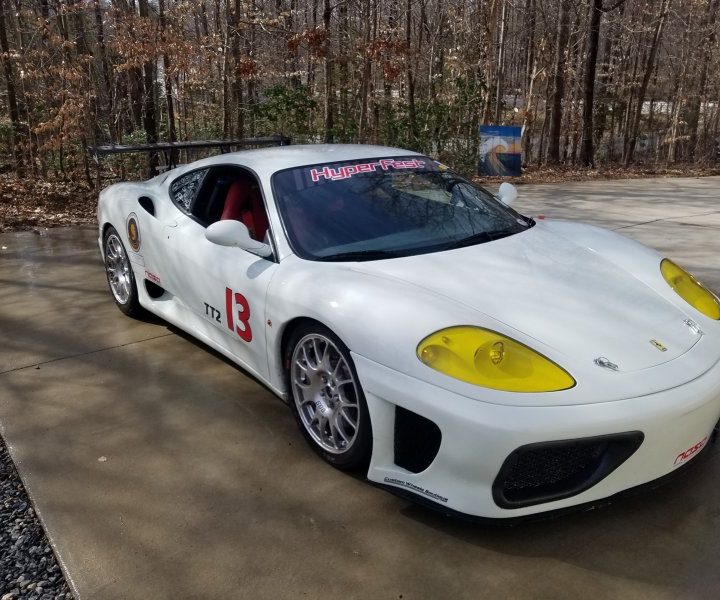 This 2004 Ferrari 360 Spider has just under 10k miles and is powered by a 3.6-liter V8 paired with a six-speed manual transaxle and a limited-slip differential. Finished in Grigio Titanio over blue leather upholstery, the car is equipped with 18″ two-piece BBS alloy wheels, a blue convertible soft top, Scuderia Ferrari fender shields, a Challenge-style rear grille, power-adjustable Daytona-style seats, a gated shifter, a CD stereo, machined aluminum pedals, a wind deflector, and automatic climate control. The car was initially delivered to Ferrari of Long Island in Glen Cove, New York, prior to being acquired by the selling dealer in 2023. This 360 Spider is now offered in New York with a battery tender, factory literature, a tool kit, spare parts, a car cover, a clean Carfax report, and a clean Montana title. The Pininfarina-designed aluminum body is finished in Grigio Titanio and features xenon headlights, a Challenge-style rear grille, Scuderia Ferrari fender shields, a power-retractable blue convertible soft top, and quad exhaust outlets exiting through the rear fascia. Scratches are visible on the underside of the front bumper cover, and paint protection film has been applied to portions of the body. The 18″ two-piece BBS alloy wheels are mounted with 215/45 front and 275/40 rear Michelin Pilot Sport A/S 3+ tires showing 2016 date codes. Stopping power is from silver-finished Ferrari-branded calipers over cross-drilled and ventilated rotors at each corner. Curb damage is located on the right-front wheel. The power-adjustable Daytona-style seats are upholstered in blue leather with color-contrasting stitching that extends to the dashboard and door panels. Interior appointments include a gated shifter, machined aluminum pedals, a wind deflector, a CD stereo, and automatic climate control. Loose upholstery is visible on the passenger airbag cover. The leather-wrapped steering wheel frames a 220-mph speedometer and a tachometer with an 8,500-rpm redline as well as a digital fuel level readout and gauges for oil pressure, oil temperature, and coolant temperature. The digital odometer indicates 10k miles, approximately 100 of which were added under current ownership. The mid-mounted 3.6-liter Tipo F131 V8 features a flat-plane crankshaft, dry-sump lubrication, dual overhead camshafts, and five valves per cylinder. Factory-rated output was 395 horsepower and 275 lb-ft of torque. Power is sent to the rear wheels through a six-speed manual transaxle and a limited-slip differential. Additional photos of the underside are presented in the gallery below. Factory literature, a tool kit, a battery tender, spare parts, and a car cover are included in the sale. The Carfax report shows no accidents or other damage and lists history in New York, New Jersey, Montana, and Florida through the most recent entry in May 2021. Multiple gaps between entries are present in the report.